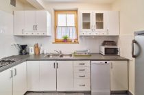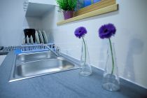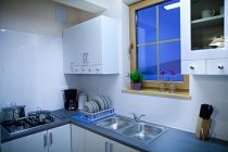 Kuchnia : lodówka z zamrażarką , zmywarka , kuchnia gazowa 4 – palnikowa , kuchenka mikrofalowa , czajnik bezprzewodowy , ekspres do kawy (przelewowy) , toster , opiekacz do kanapek , komplet naczyń , sztućce , komplet garnków i patelni , wszelkie niezbędne przybory do ugotowania pysznego obiadu ( tarka , tłuczek do mięsa , otwieracz do konserw itp.) , stół umożliwiający spożycie wspólnego posiłku przez wszystkich gości , krzesełko dla dziecka
